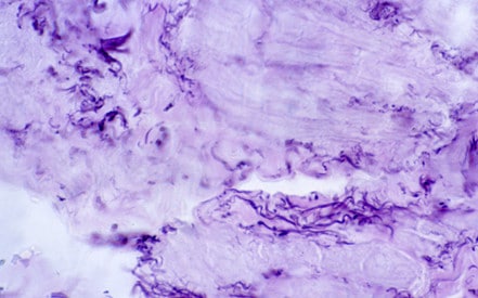 Εικόνα 10δ. Οι ελαστικές ίνες είναι μειωμένες σε αριθμό, ενώ οι ανευρεθείσες είναι βραχείς και με ανώμαλη μορφή. Αυτός ο ιστός δεν δύναται να εκπτυχθεί φυσιολογικά.